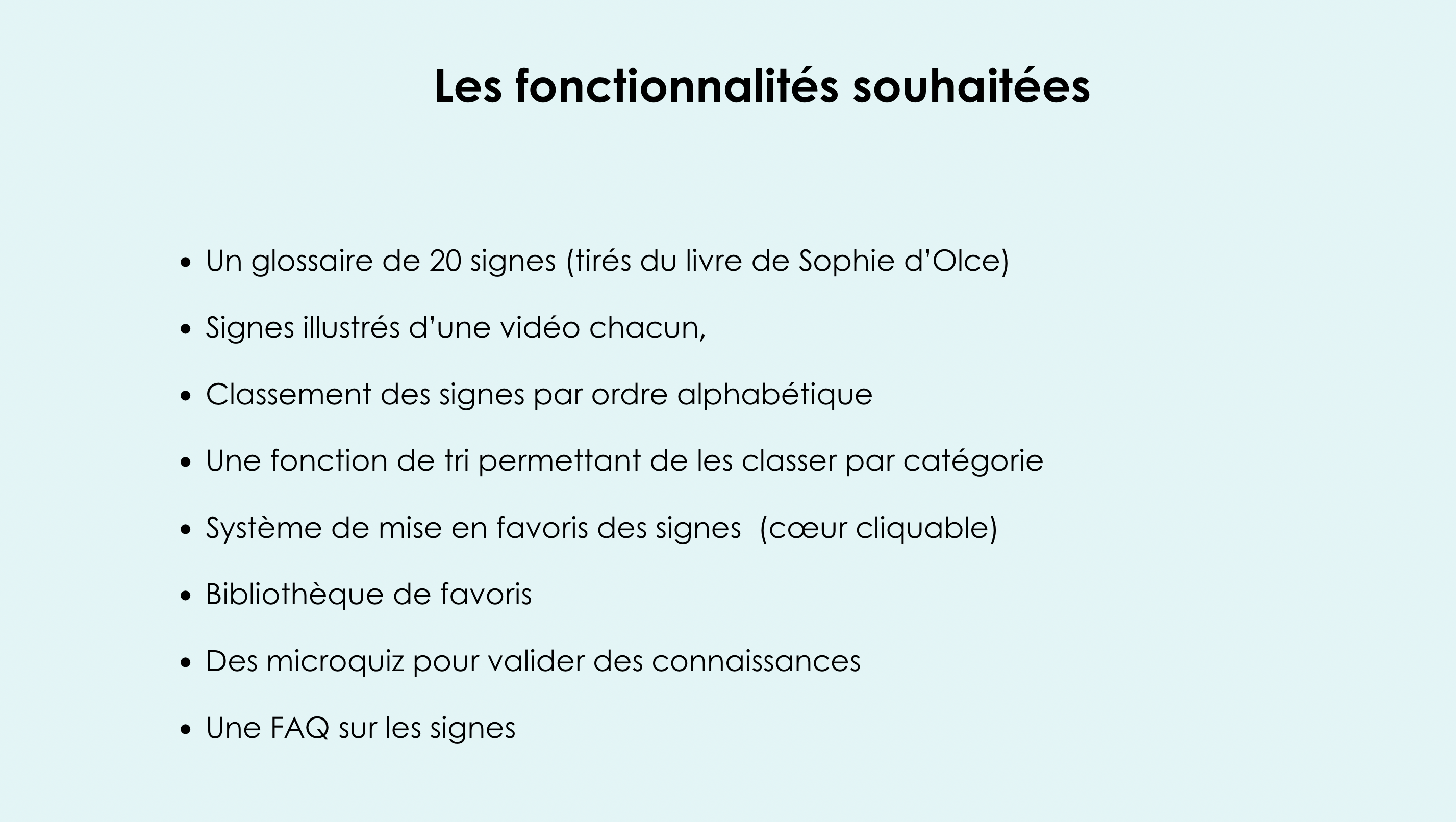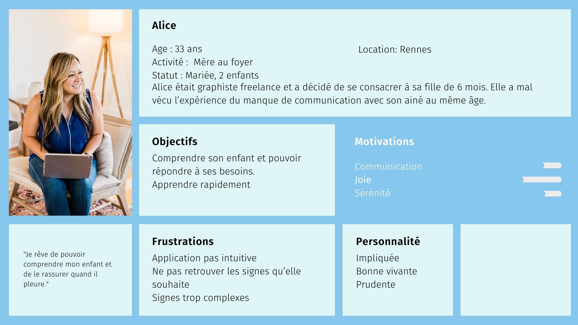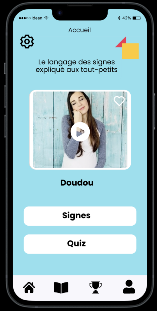 UX Designer au sein de l’agence « En avant les babies », on m’a confié la mission de réaliser de créer un PMV pour la crèche Les Bambinets. Le projet était de concevoir une application mobile destinée aux professionnels de l’enfance et aux parents pour apprendre le langage des signes aux tout-petits.